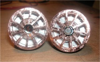 Finalement l'anode s'ouvrit en deux (Photo ci-dessus ) . On voit très bien les dix cavités résonantes ( fréquence 2,45 GHz ) qui interagissent avec le flux délectrons sécoulant de la cathode (dont on voit le chapeau sur la moitié droite ) vers les languettes terminant les cavités, en suivant des trajectoires enroulées par le champ magnétique des aimants.
